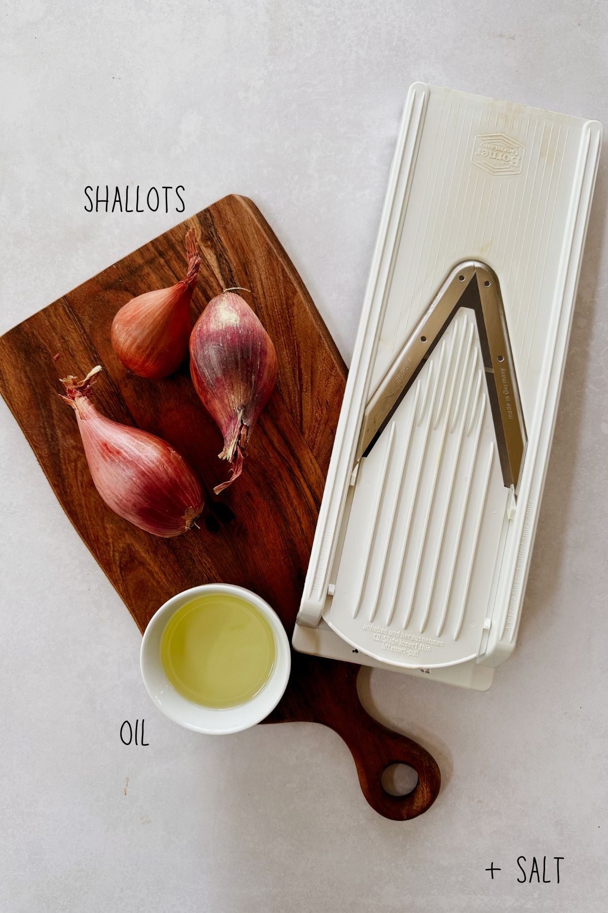 - Slice the shallots extra thin and even - a mandoline like this one works best for perfect crispness.