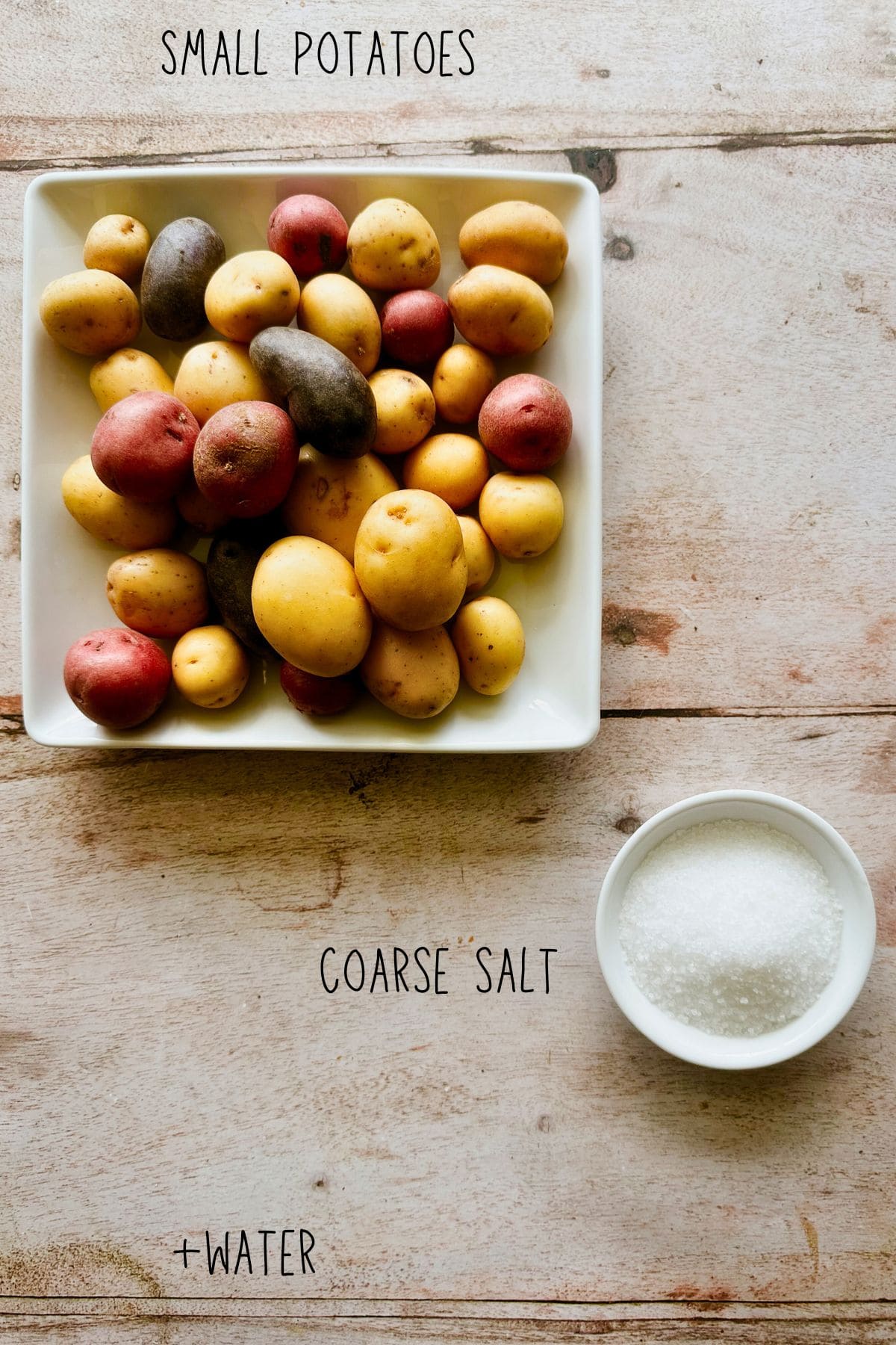 - Go heavy on the salt. The water should taste like the ocean (promise, the inside stays perfectly creamy, not salty). Most of it stays in the water, and only a thin, crusty layer clings to the potatoes. I like to use between 2-3 tablespoons of coarse salt per pound of potatoes (with roughly 4 cups of water), but you can dial it up or down depending on how salty you like them.